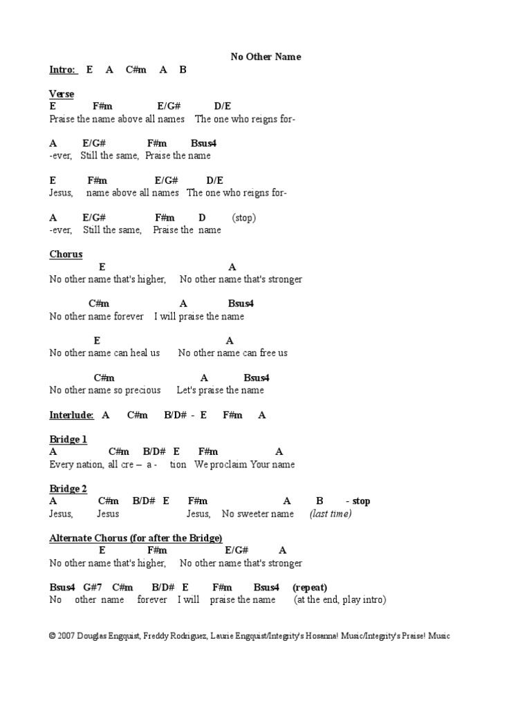 No Other Name Chords Pdf